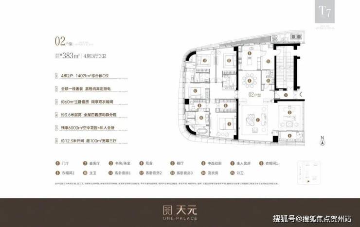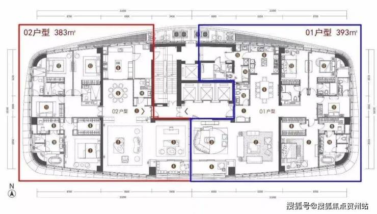 户型建面格局核心配置01户型383㎡4房3厅6卫南北通透+80㎡横厅+独立家政通道02户型393㎡5房3厅6卫中西双厨+双主卧套间+全景落地窗