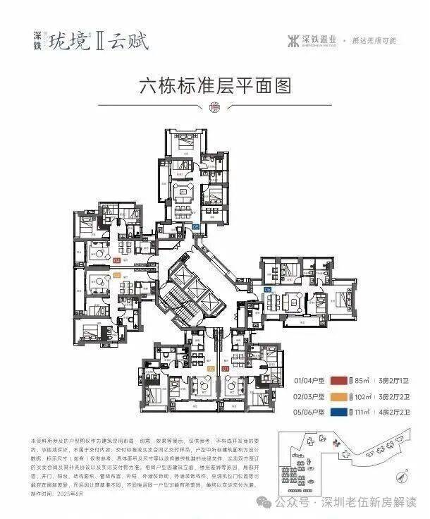 ▫️ 超高层+高公摊: 二期为49-55层超高层,3梯6户,得房率约75%。对比周边新盘(如中洲、中建)略显保守,85㎡仅1卫,102㎡3房2卫相比一些新规楼盘,户型使用率并不占优。
