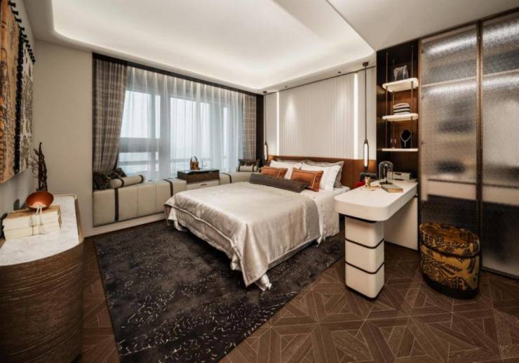 - **细节亮点**:厨房配备嘉格纳嵌入式家电与中岛台;次卧均设计为套房,预留智能家居系统接口;约40㎡的景观露台可定制为空中花园或休闲区。
