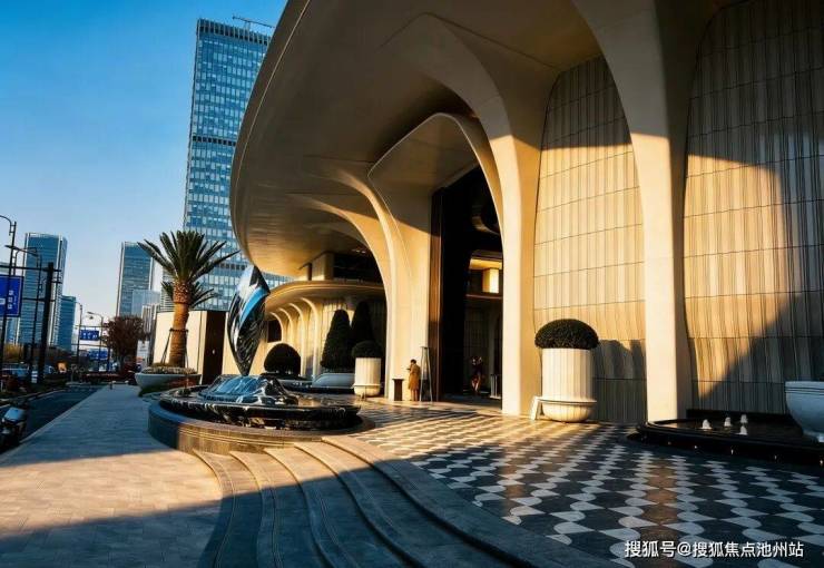 元序采用大面玻璃幕墙,通过搭配仿石铝板、釉面陶板等高端材质,组成“超流体屏”;将天然石材与高迪曲线完美搭配,虽为现代风,却无绝对直线棱角,自然形成艺术感极强的建筑单体。