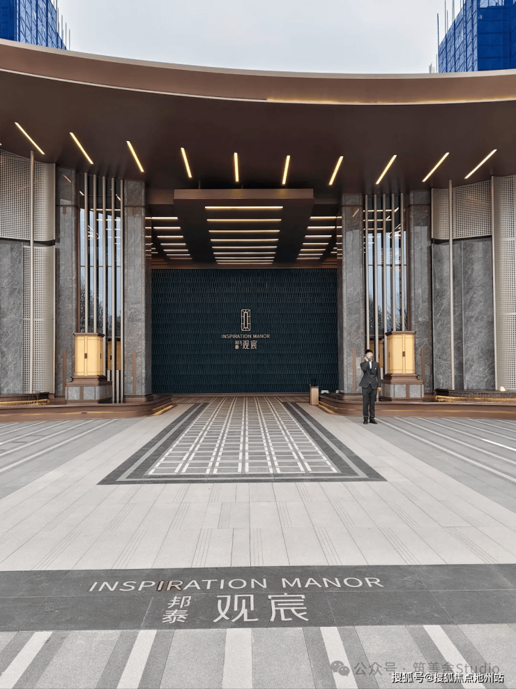 主入口设计宽度达80米,高度近12米,灵感源自岳麓山脉的壮丽天际与湘江波涛的涌动,铸就了一幅别具匠心的景观画卷。在材质的选择上,精心采用了香槟金不锈钢线条勾勒装饰、爱马仕灰大理石铺陈、以及手工精制的黑山石,这些高端硬核材质的融合,不仅呈现出非凡质感,更避免了任何形式的材料堆砌,彰显了极致的审美品味。精选多种奢华石材精心打造,辅以高端定制景德镇陶瓷釉面艺术砖,彰显独特艺术魅力。此单面景观墙造价高达20万元,尽显奢华风范!