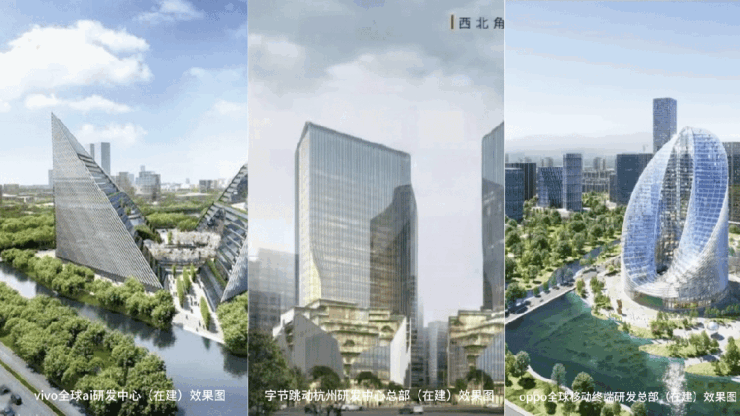 三年后,这里将雄踞字节跳动(在建)、钉钉总部(在建)、OPPO全球移动终端研发总部(在建)、VIVO全球AI研发中心(在建)、国际体育中心(在建)等众多城市地标。这些地标中,不仅拥有科创金融类企业助力余杭GDP(2023年余杭GDP浙江省第一)再上高楼,更有高能级文化配套以文脉力量开启城市前行的化蝶之旅。