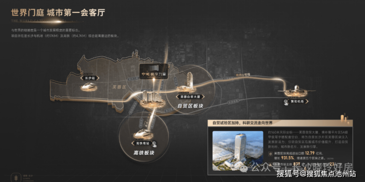 承东启西,南北联通:红旗路接通星沙与高铁南站;人民路横贯五一路商圈黄兴广场与黄花机场; 主干轨交,双线复合:“人民路+6号线(已开通)”、“红旗路+12号线(远期规划中)”叠加“复合出行”;