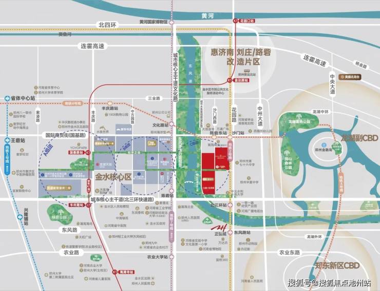 项目占据金水北发展轴心,北三环与中州大道构成15分钟通勤圈,地铁网络无缝衔接瀚海北金、龙湖天街等商业综合体。西侧一墙之隔的纬五路一小东校区与金水外国语东校区形成全龄教育闭环,家长接送孩子仅需步行5分钟。这种"轨交+主干道+名校"的黄金三角配置,让项目成为区域内罕见的全能型社区。