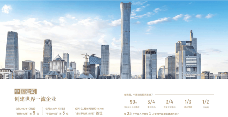 中建四局&中建地产,实力央企中国建筑·造就天河半壁地标!【中国建筑】2023年《财富》世界500强排名第13的大型国有企业,全球蕞大的住宅工程建造商和中国蕞大的房屋建筑承包商,是由中央委任的十六家以房地产开发为主业的国有企业,连续荣获标普、穆迪、惠誉等国际三大评级机构信用评级A级(全球建筑行业高级信用评级)。