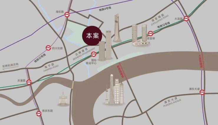 约2.4公里大连路隧道(直线距离),直达浦东东方路、世纪大道、八百伴商业圈