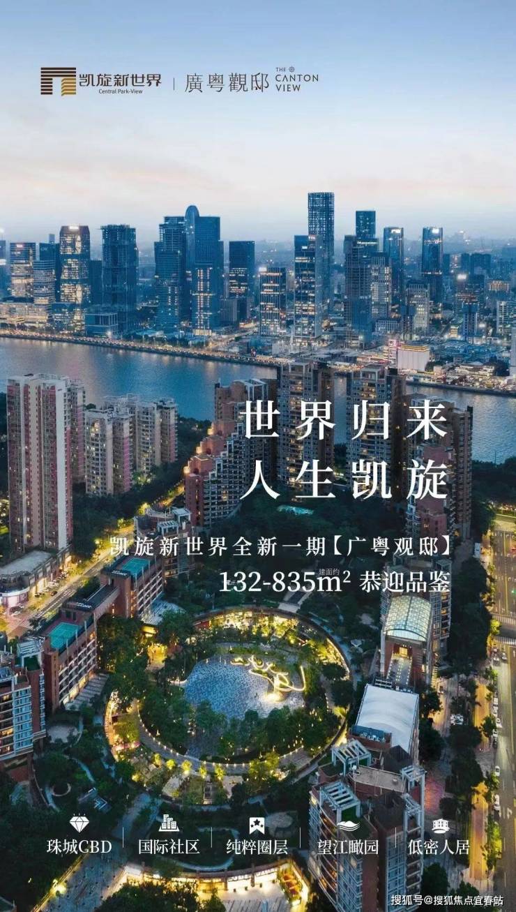 凯旋新世界占地11万方,拥有了4.8万方的大型中央私享园林,社区容积率更低至2.9,成为整个珠江新城占地面积最多、园林最大、容积率最低的社区。直到现在,在珠江新城仍无盘媲美。