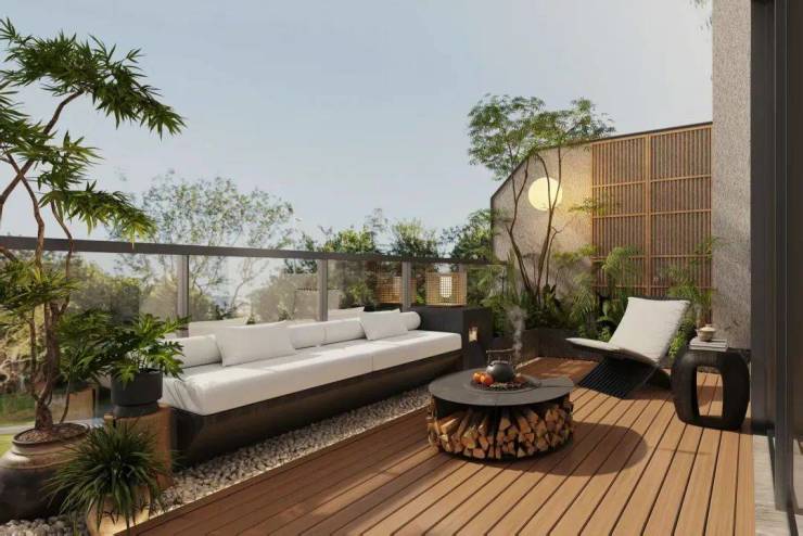 于此,可静观罗汉松在晨光中的剪影,可感受围炉夜话时炭火映红定制石材,可聆听雨滴轻敲阳光房顶的韵律。这里既是白昼的茶寮、夜晚的星空影院,更是罕见的空中墅居。