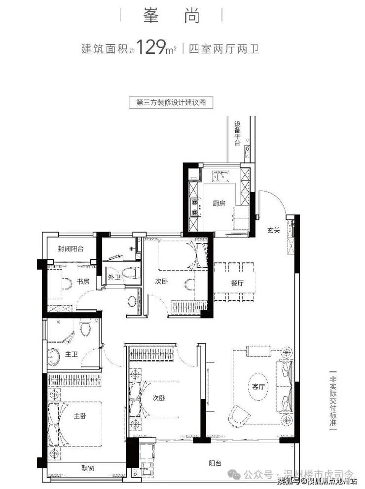 3.户型特点:户型设计1条过道,过道面积紧凑,空间少不浪费。4室比较适合改善型人群,2卫的设计,解决了抢卫生问的尴尬,同时也保证主人生活私密性。主卧套房的设计,扩大卧室面积,提升 主人居住体验,配有独立的主卧卫生问,增加私密性。