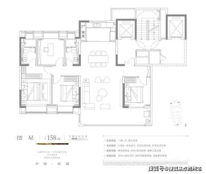 户型采用一梯一户+独立玄关的设计,拥有独立入户电梯厅,保护居家隐私性。