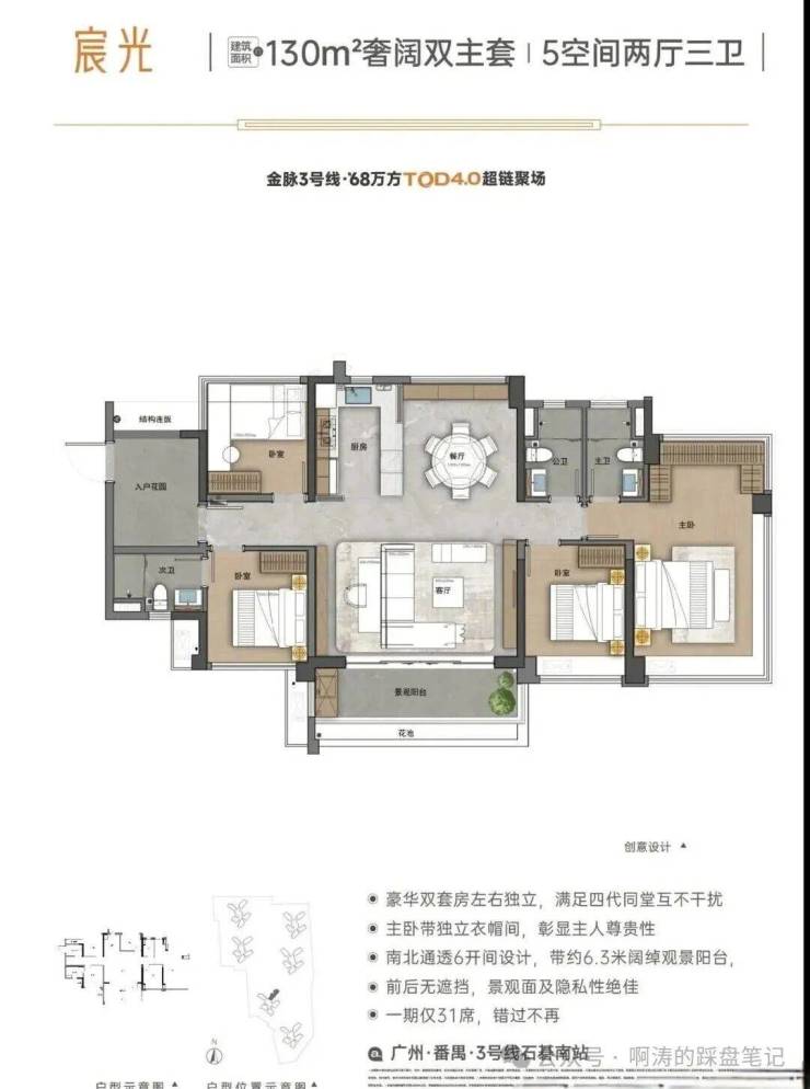项目整体规划约68万方,是广州地铁地产TOD4.0生活模式首发作品,遵循广州地铁“以城为本,以人为本”发展理念,以品牌“好房子”产品观为基石,以3号线超链城市,为城市兑现品质多元新生活聚场。