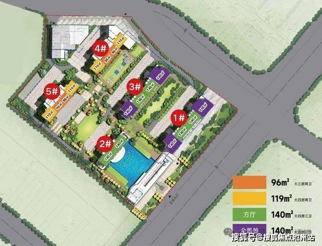 该项目全盘一共就四个户型,其中3号楼共18层,2梯2户,有2种建面约140平户型;4号楼共34层,3梯4户,建面约96、119平户型。