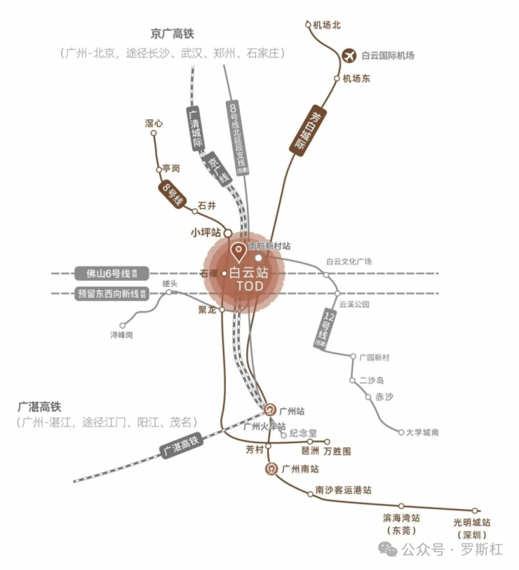 白云站已接入地铁8号线,未来还将新增5条地铁线路,并与芳白城际(连接白云机场)形成空铁联运。立体化的交通体系,让【白云站TOD粤胜广场】成为“流量枢纽”,辐射湾区乃至全国的高频商务与旅游人群。