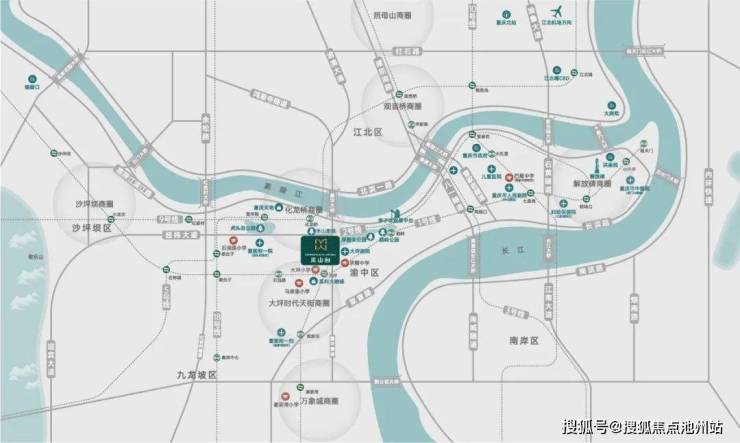 踞守重庆城市中心与五大商圈(解放碑、时代天街、杨家坪、沙坪坝、观音桥)物理圆心,半径3公里覆盖80%城市资源。