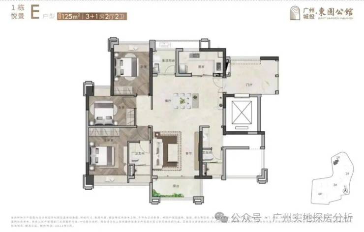 项目不大,一共有4栋,其中,4#为政府规划用房,只有1#、2#、3#对外销售,都是21层小高楼,专梯专户的设计,专属电梯直接入户,除了1栋是五梯五户之外,另外2栋都是四梯四户。