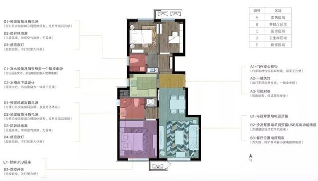 麻雀虽小,五脏俱全。萬橡悦府的精装交付大到新风除霾系统、厨卫装修、冰箱独立供电系统,小到离家一键灯光关闭、餐桌位置的插排预留,都是交付标准。值得一提的是洗衣机的存放处位于卫生间旁的储物间中,不但位置隐蔽,而且有助于噪音隔离。
