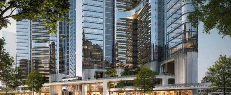 项目由Foster+Partners、SWA等六大全球顶尖设计团队联袂操刀,将自然、光影与建筑深度融合,打造一座与江共生的现代艺术住品。建筑外立面采用全玻璃幕墙系统,配以金属横向装饰线条,勾勒出简洁流畅、晶莹剔透的天际轮廓。
