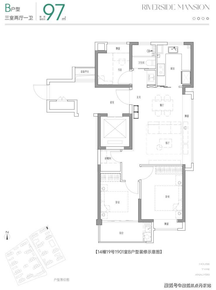 【90/97㎡ 三房两厅一卫】