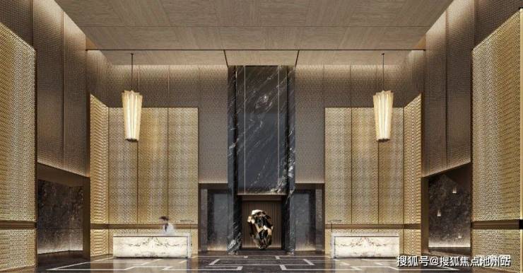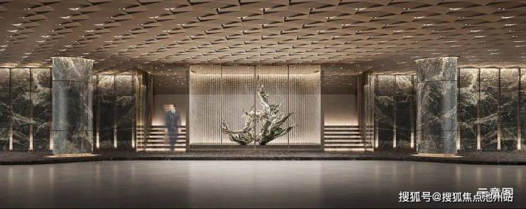 酒店式入户大堂,还定制文化屏风,静面水景映出长江万里图,凸显品质的同时也彰显了艺术气息。