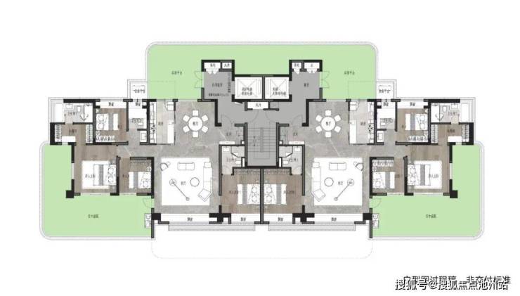 核心亮点:一梯一户,电梯厅前的空间全部是私享的。每户享有宽大挑高的南向空中庭院。