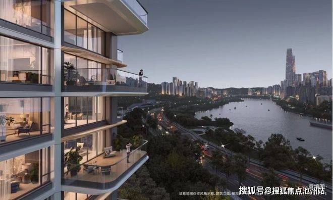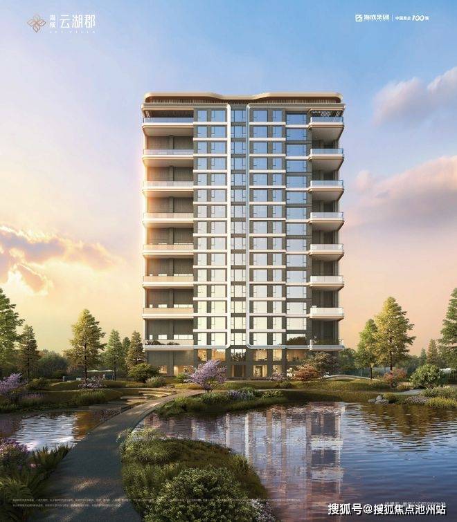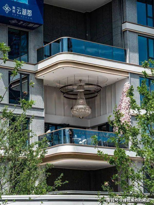 海成云湖郡通过弧形线条的几何美学与精工细作,香槟金、月影白的错落搭配,0.31的窗地比,淡化棱角,提升采光面,使整个建筑看起来柔和温润,更具精致和奢华质感,很有艺术感和辨识度。