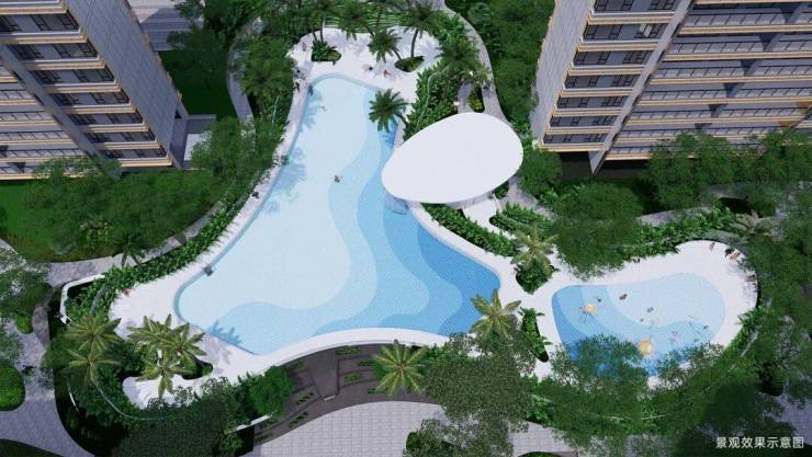 臻质生活艺境:与通海公园对望,打造多重美好生活场景,包括户外悠享泳池、架空层功能活动空间、轻奢疗愈度假园林和精装奢阔室内空间。