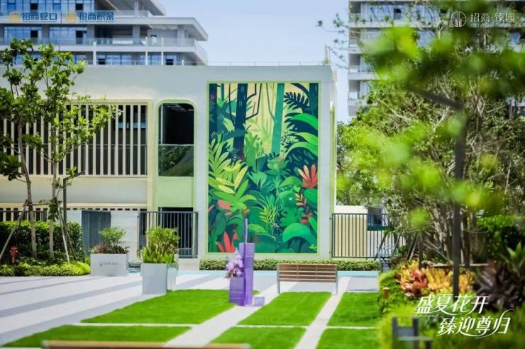 走进三亚招商・臻园,一幅巨型绿植墙绘瞬间抓住眼球。墙绘以自然生态为主题,鲜艳花卉与绿植相互映衬,仿佛将一片生机盎然的花园“搬”到了社区墙上。