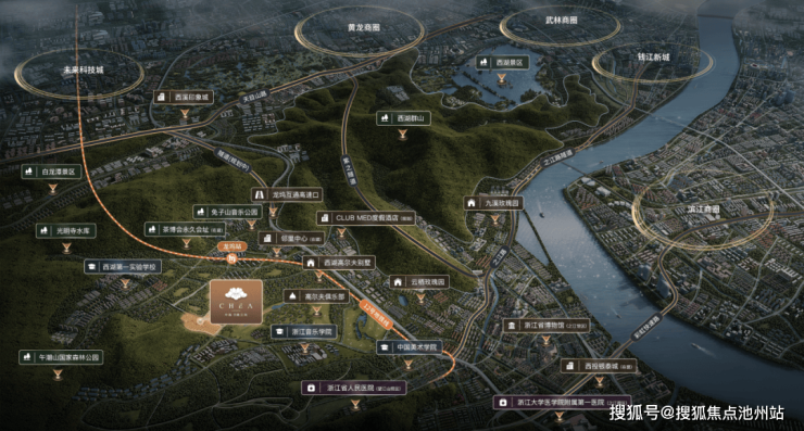 【设计理念】将龙坞自然风貌、东方文化、山水居住的喜好融进建筑设计表达,形成了“山水韵、东方意、天地境”的建筑意境