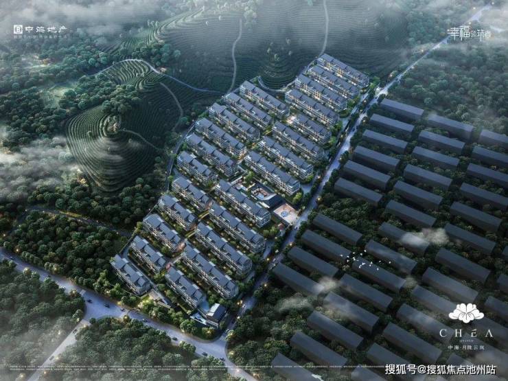1.【山水韵】突破传统的建筑形态,最大化隐去墙体与边框的桎梏,将建筑融于自然天地间,建筑群如远山淡影,远近面面皆风景