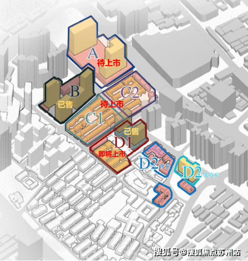 项目整体分为6个地块,即A、B、C1、C2、D1和 D2。
