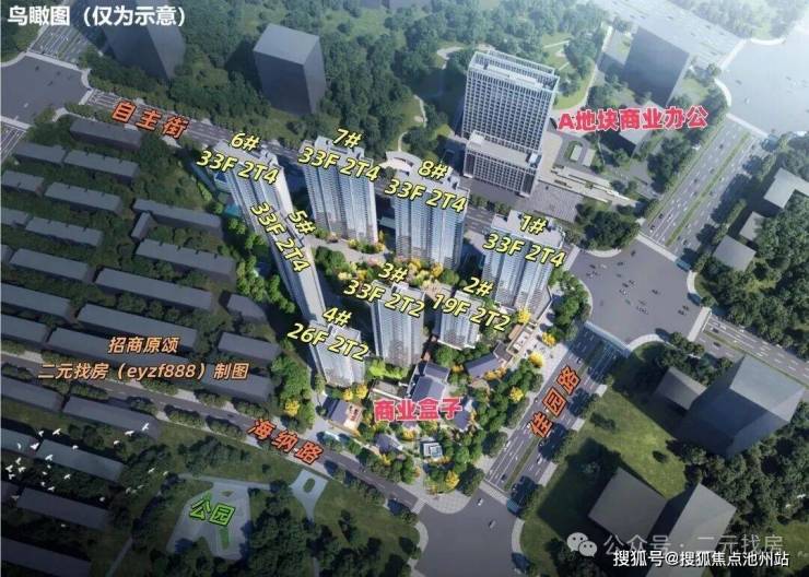 其中,1号楼、3号楼、5-8号楼总高33F,2号楼19F,4号楼总高26F,2-4号楼为2梯2户,其余均为2梯4户。