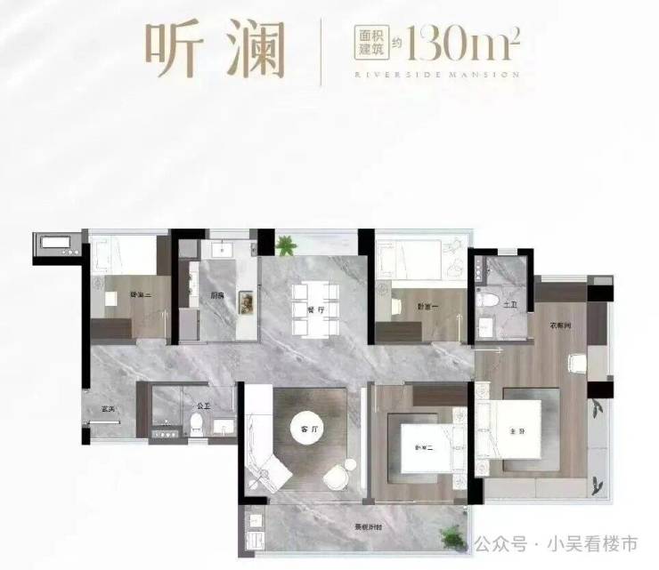 建面约130平产品,6#A户型入户花园及公卫视野会被约143平户型部分遮挡,但客厅+主卧是无遮挡的,东南向景观与约143平户型一样。