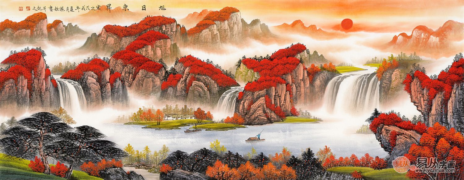 鸿运当头 女画家刘燕姣山水画作品《旭日东升》 作品来源:易从网