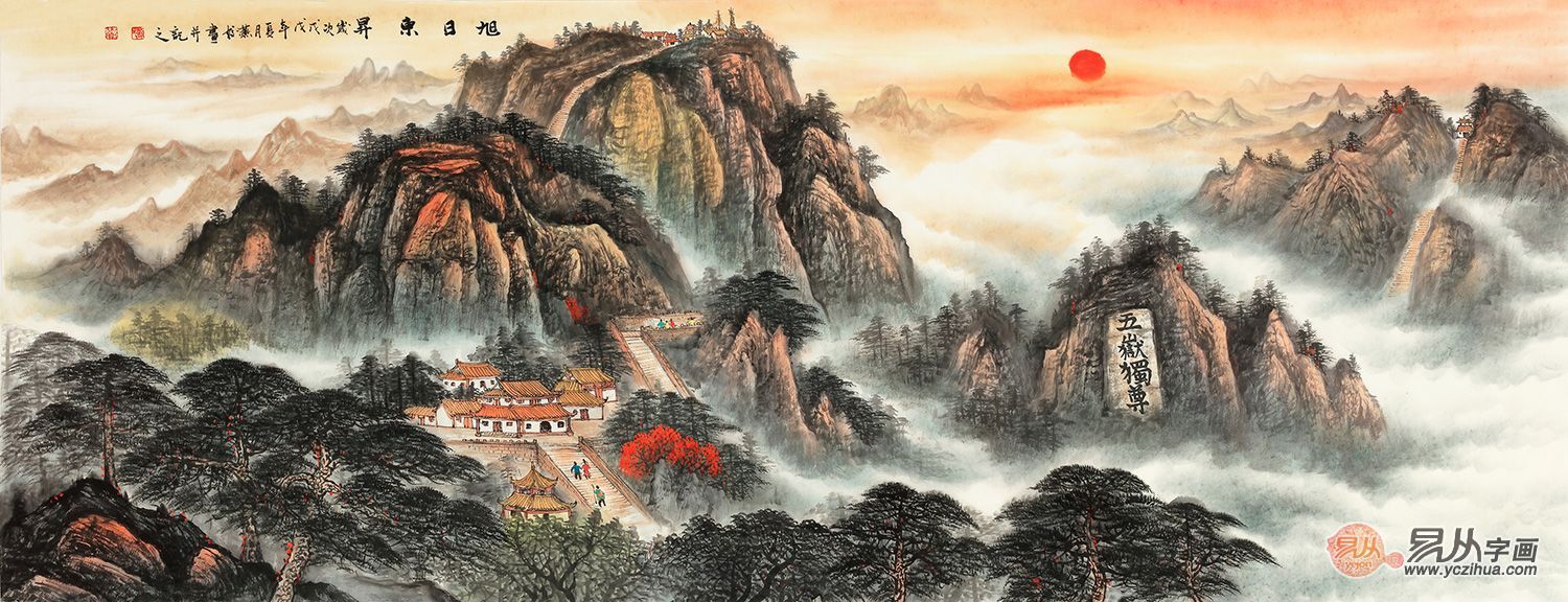 五岳独尊 画家刘燕姣六尺国画泰山《旭日东升》 作品来源:易从网