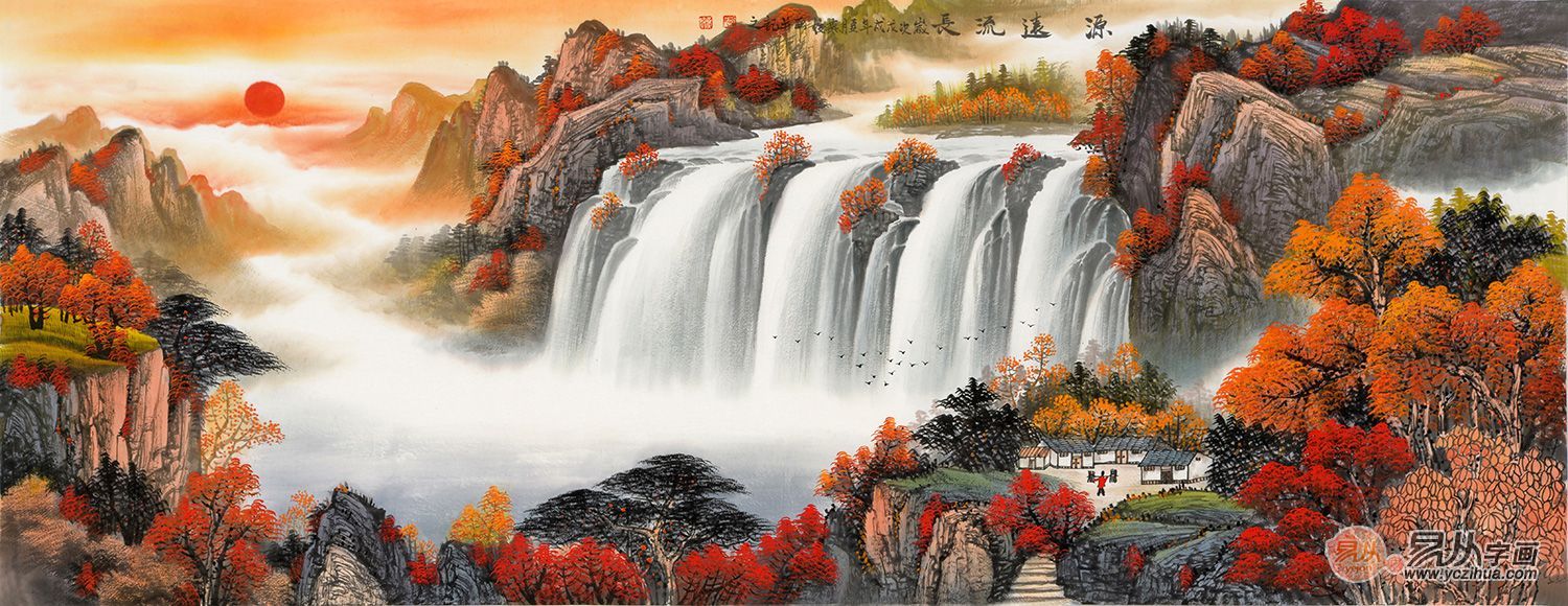 聚宝盆山水画 刘燕姣六尺横幅作品《源远流长》 作品来源:易从网