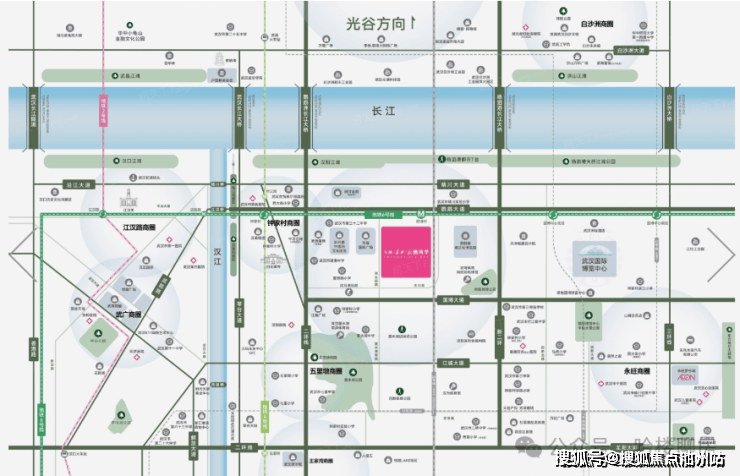 鹦鹉大道、晴川大道、国博大道主干道环绕