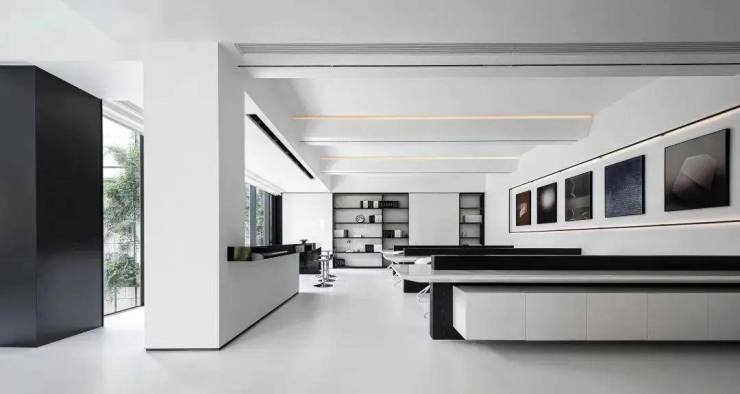2-3层是精英办公场域,约3.8米层高,空间通透,作为点睛之笔,竖向垂直花园和顶楼“取景框”,让花园绿植延伸至眼前,目之所及,青绿怡人,灵感涌现,从容开阔。
