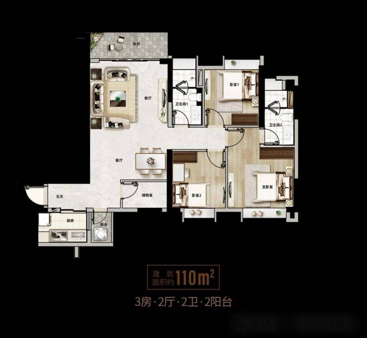户型上,小区的户型设计基本一样,产品涵盖建面约93-95平、110平、129平四种户型,
