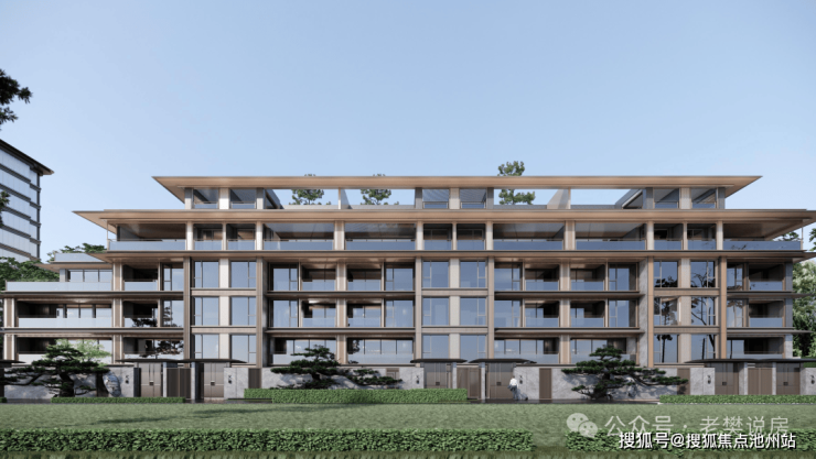 洋房和小高层:首层为爱马仕灰与河流白石材,标准层为金属铝板搭配水包砂真石漆。