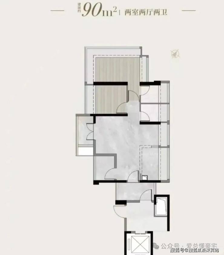 新规优势:专梯入户、入户花园、阳台赠送多,得房率约 85%