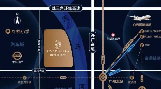 嘉河湾 8 号交通条件优越,为居民出行提供了多样化选择。距离最近的地铁站 9 号线花都汽车城站约 1.3 公里,步行约 12 分钟即可到达,对于日常依赖公共交通出行的居民来说十分便利。9 号线作为花都区重要的地铁线路,可连接广州市区多个重要区域,方便居民前往白云区等地进行工作、购物、娱乐等活动。荔红路南北走向,项目离许广高速口不远,通过向北途经迎宾大道和花都大道,向南途经风神大道,自驾出行也极为便捷。许广高速可快速通达广州市区及珠三角大湾区,方便居民进行长途自驾旅行或商务出行。无论是前往广州中心城区,还是周边城市,都能高效抵达。这种地铁与公路相结合的交通网络,使居民无论是选择公共交通还是自驾,都能轻松出行,畅享便捷的都市生活。