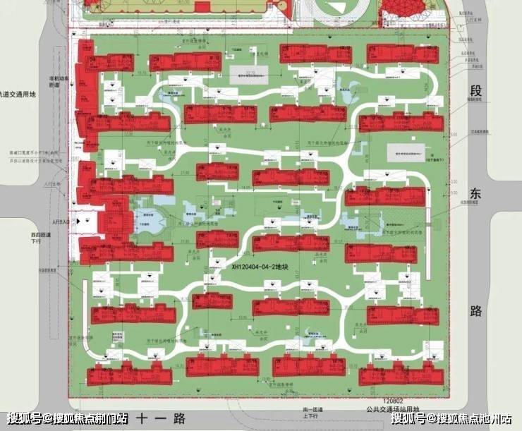 XH120404-04-2地块为二类城镇住宅用地,总用地面积105004㎡,总建筑面积251229.2㎡,其中地上总建筑面积147725.2㎡(含地上计容建筑面积136505.2㎡,地上不计容建筑面积11220㎡),地下建筑面积(9-17m盖板之间)103504㎡。建筑密度18.2%,容积率1.3,绿地率35%。