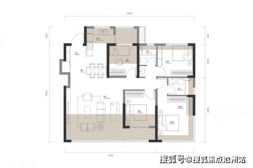 建面约109㎡四房两厅两卫,强功能性四房,进门带S墙,南向面宽约12米;客厅+南向次卧开间约8.5米,其中次卧开间约3米,客厅开间约5.5米,后期可按需改造为4+1房。