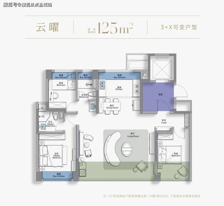 建面约125㎡云曜:奢尺四开间,全面迭新生活想象力