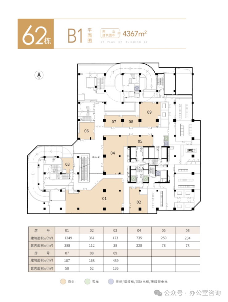 【62栋3F】: 总建面约 5169m² 含商业及写字楼