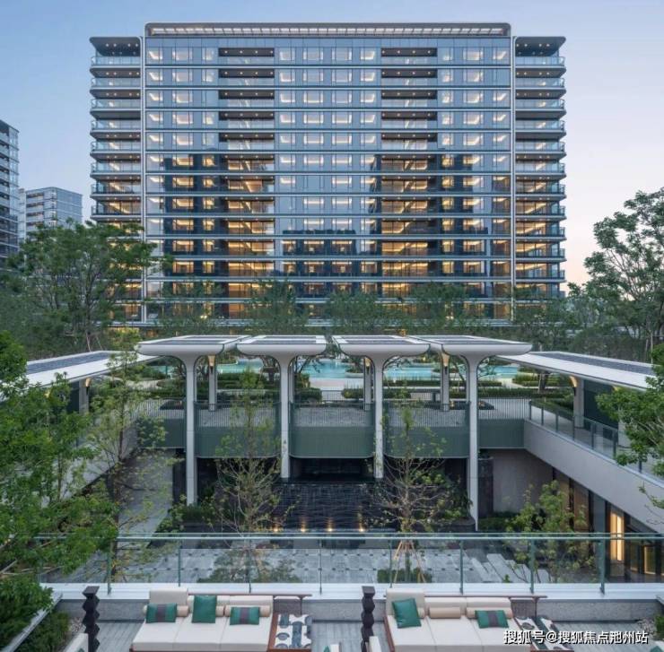 ▲N重对称的楼盘大门,绿城·芝澜月华,杭州,实景图映照在大堂透景窗里的,是园区里更多的玉树造型——它们又成为了非常重要的景观语言。些从下沉式庭院里生长上来的玉树造型,就像是升腾的树阵,形成了一条玉树游廊。它们贯通地上地下,给立体景观带来了更强的一体感你肯定已经发现,标志性的玉树造型已经成了建筑、景观与室内一体化设计的通用设计语言。绿城很讲究「三专业一支笔」,这正是建筑、景观与室内三个专业协同创作所带来的浑然一体。