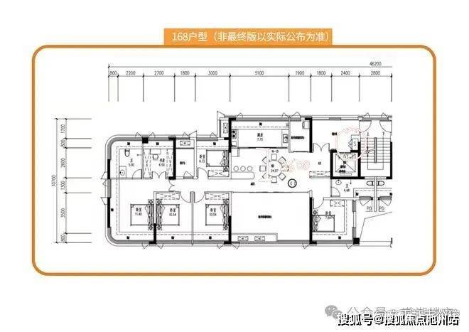 再来看看嘉信洋湖锦玺的168㎡户型,5+1室6房2厅3明卫!客厅面宽达近7米、主卧面宽约4米、南北对流的全明户型,总共6个房间,5间卧室+1间书房的设计,同样客餐厅等宽,面宽和得房面积以及得房率都非常的夸张,套内得房约212㎡,得房率125%,非常疯狂Big胆的设计,很震撼,也很超前,更不可思议;
