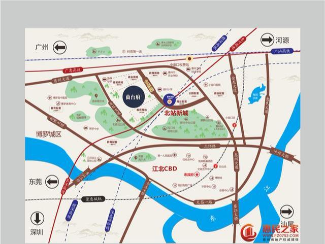 汇:赣深高铁,广深高铁,莞惠高铁,深惠高铁,惠州地铁1/3/5号线。10min畅享江北CBD