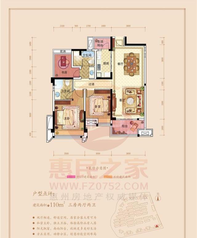家园林,配有7重富氧生态体系,项目不到30%的建筑密度和30%以上的全绿植覆盖,是惠州