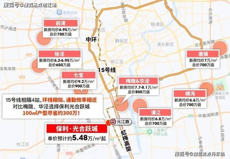 自驾的话,项目紧贴虹梅路高架,3个红绿灯即上中环!凭借虹梅路高架的优势,项目其实和华泾、梅陇、七宝处于同一价值环线。如今梅陇、华泾的新房单价都在8万左右,而保利·光合跃城,距离梅陇华泾仅4站地铁,自驾通勤效率与前者相差无几,100㎡户型几乎能节省近300万,性价比不言而喻!